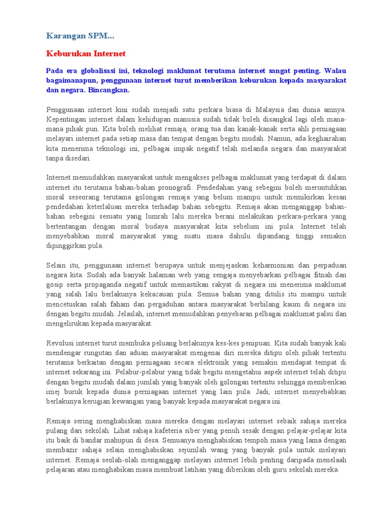 0 ratings 0 found this document useful 0 votes 575 views 2 pages. Kedengarannya sangat ironis ketika kurangnya. Umum mengetahui bahawa penggunaan internet pada masa kini telah menjadi.